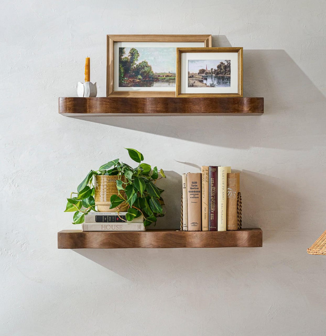 Modern Live Edge Wooden Deep Floating Shelves – Set of 2 | Wood’s Buddy